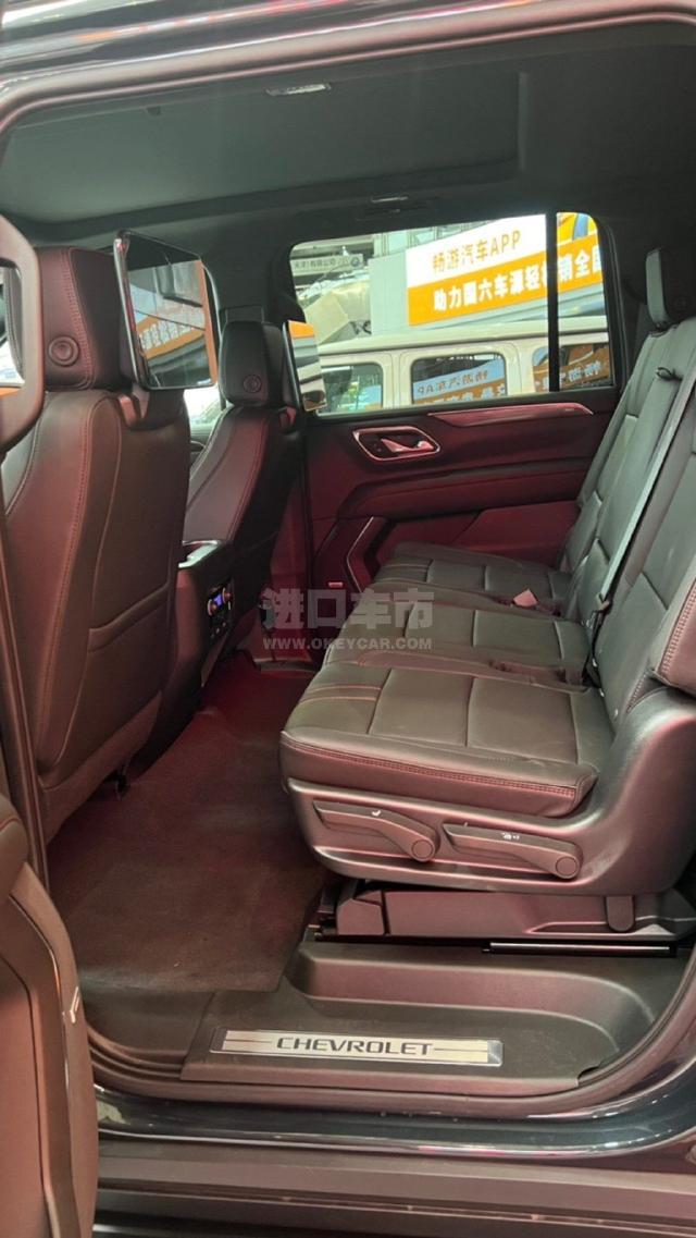 配置 :22款墨版雪佛兰萨博班5.3四驱RST 选配:液晶仪表 后排娱乐 标准配置 8座 RST V8发动机 10速 22寸轮 全景天窗 黑行李架 雪佛兰10寸彩色导航屏和无线电话投影 4G WiFi BOSE音响带9个放大扬声器 倒影 电尾门 并道 电动座椅带记忆 前后接近传感器 前方碰撞警报和协助前方行人检测警报 车道偏离辅助 无线充电 拖车控制