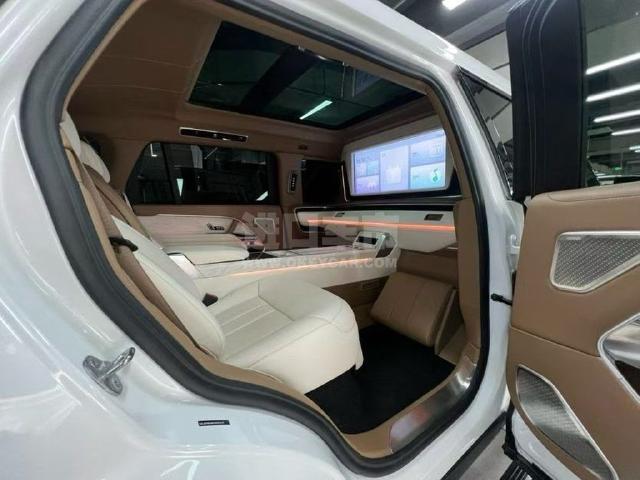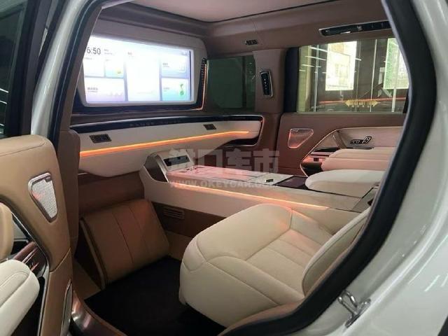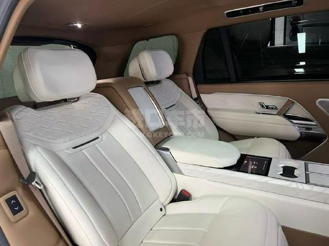 配置 :揽胜行政 23款 3.0T 皇家一号 5.9米 #055642 白/棕象牙白双拼内饰 基础参数 外廓尺寸:5975mm/2000mm/1920mm 轴距:3910mm 发动机:3.0T直列6缸汽油P400 驱动形式:全时四驱 整备质量:2835kg 变速箱:8挡手自一体 油箱容积:90L 定制项目 1.整车内饰包覆进口小牛真皮 2.整车白桦木风格饰件 3.后舱升级路虎原厂座椅(通风、加热、按摩)靠背前后调节,电动升降头枕,腿托高低调节,腿托二级调节,座椅45度抬高调节 4.后舱升级路虎原厂触摸屏(空调调节,座椅调节,氛围灯调节,冰箱) 5.后舱升级路虎原厂储物箱(USB接口,type-c接口,点烟器) 6.后舱升级路虎原厂座椅控制按键 7.后舱升级电动升降桌板(手动折叠) 8.后舱升级电动升降34寸高清网络娱乐电视 9.后舱升级氛围灯,可储物脚枕,储物夹,触摸式壁灯 10.后舱定制驼色羊绒脚垫