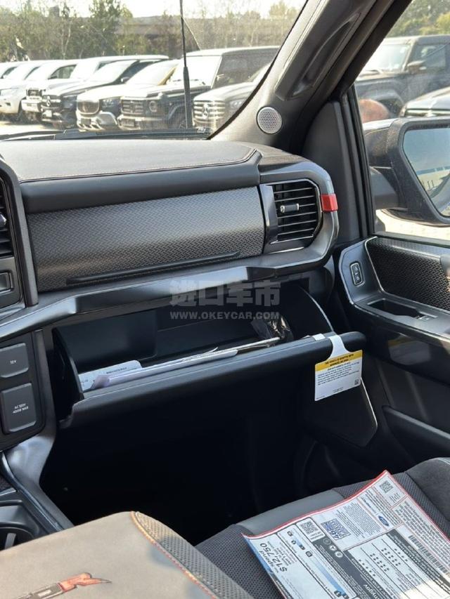 配置 :F150猛禽R:黑色24款满配猛禽R 天窗,内衬,彩条 主要配置:5.2t,720匹马力, 803A包,喷涂内衬,新款猛禽R贴纸,抬头显示,方向盘加热,黑色Alcantara麂皮和Recaro赛道座椅,碳纤维内饰,双阀门电磁减震,模块化前保险杠,独特的机甲风格的37*12.5 R17寸 BSW全地形(A/T)轮胎,Raptor R 独特造型的17英寸防脱铸铝轮毂 801A包:抬头显示,运动型FOX前后避震器,315/70/R17寸全地形轮胎,电动折叠、加热后视镜,铸铝脚踏板,隐私色调和除霜功能的电动滑动后窗,感应雨刷,远程遥控启动,遥控后尾门,360°环车影像,LED侧视镜聚光灯,双区自动恒温空调,前排座椅通风加热,后排座椅加热,集成拖车制动控制,方向盘加热,自适应巡航,BO音响14扬声器带超重低音,Rigid射灯,中网示宽灯、示廓灯,智能四驱4A,前桥拓森差速器,梯子扶手,电动尾门。 802A包:37*12.5 R17寸 BSW全地形(A/T)轮胎,Raptor 37独特造型的17英寸防脱铸铝轮毂,双阀门电磁减震,模块化前保险杠,黑色Alcantara麂皮和Recaro赛道座椅,碳纤维内饰 Raptor 803A包(5.2机增 V8 720P马力,37*12.5 R17寸 BSW全地形(A/T)轮胎,Raptor R 独特造型的17英寸防脱铸铝轮毂,双阀门电磁减震,模块化前保险杠,黑色Alcantara麂皮和Recaro赛道座椅,碳纤维内饰,橙色“R”字外观、内饰主题,橙色拖钩,带有橙色“R”徽章的Raptor R独特的发动机罩、前格栅,尾门,内饰橙色代码缝线、徽章,400W后斗电源。