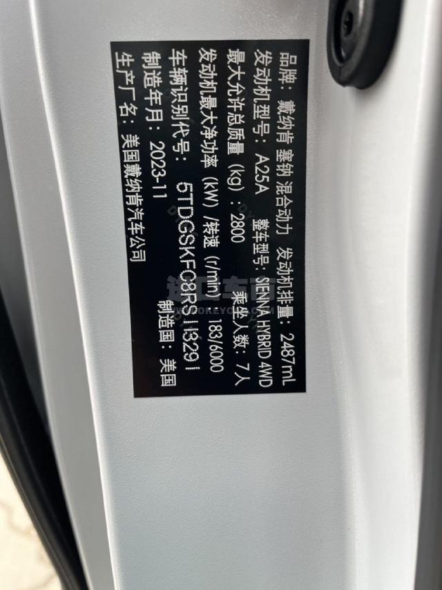 配置 :24款加版塞纳 四驱LTD顶配 白/米 3291#
