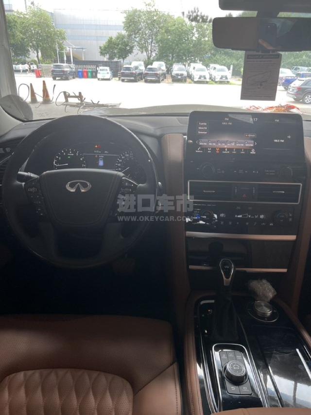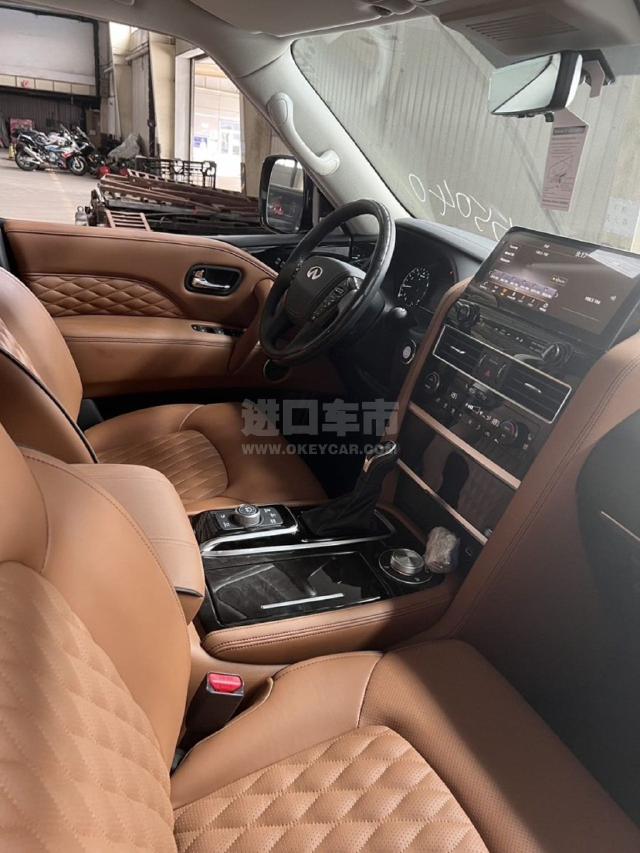配置 :23款英菲尼迪QX80 Pro 黑/棕 配置:Pro ACTIVE顶配,5.6自然吸气 V8发动机,400马力,413磅英尺的扭矩,盲点警告(BSW),牵引能力-8500磅,7座,天窗,真皮加热方向盘,远程遥启,12.3英寸信息触摸立屏,半苯胺菱形格座椅,主动式头枕,二排船长座椅带中央扶手,BOSE音响,17个扬声器,随速转向助力,预碰撞警告,盲点监测,车道偏离警告,驾驶员注意警告,雷达测距,环车影像,无线充电,车载蓝牙,前排座椅通风加热,前排座椅记忆,二排座椅加热,全模式四驱,自动牵引力调节,Apple CarPlay和 Android Auto ,22寸暗夜感官铝合金轮毂配有全季节性能轮胎,镀铬外观套件(后视镜、前格栅、侧通风口、尾门饰板)自适应大灯带自动调平,流媒体后视镜,智能巡航控制(全速范围)主动距离控制,气候控制系统,空气净化器,液压车身运动控制系(HBMC)