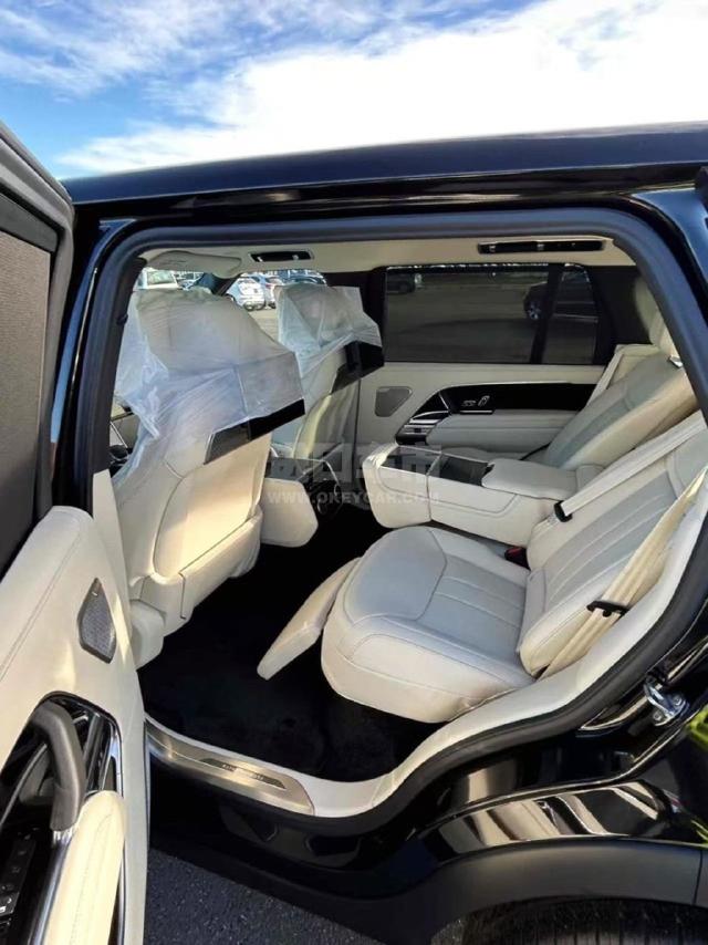 配置 :25款欧版 路虎揽胜创世加长 D350 黑/米 5变4座椅 黑色钢琴漆 1680W高级音响 34个扬声器 英国之宝音响!腿拖 黑钢琴内饰 22轮 后预娱乐 标配:全景滑动天窗、半苯胺真皮座椅、前排座椅24向调节加热通风按摩、后排电动座椅 加热 通风!、双色方向盘带加热、抬头显示、雷测、无钥匙进入、电吸门、脚感电尾门、流媒体后视镜、4区空调、盲点辅助、环车影像、泊车辅助、前挡风玻璃加热、双层隔音玻璃、前排手机无线充电、后排电动遮阳帘、空气离子净化、车前门边扶手可加热、SV定制黑色车内顶 数字LED大灯