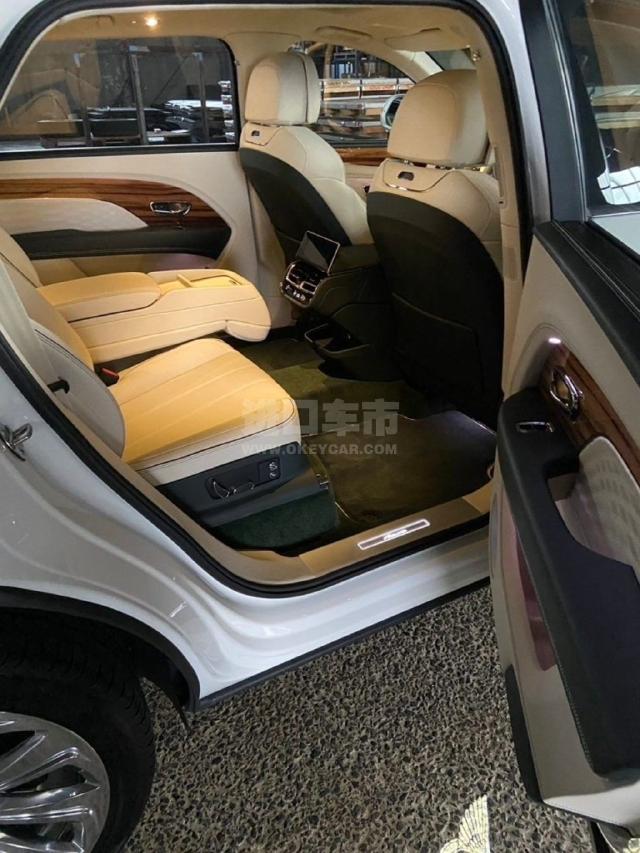 配置 :25 款宾利.添越加长 雅度版 外观颜色:冰川白 内饰颜色:亚麻白/鲸鱼黑 双拼内饰 配置:22英寸十辐金属抛光轮毂,后门一键关门,胡桃木中控面板,流光菱形格套件,迎宾灯,宾利动态驾驶(后轮转向)双色多功能加热方向盘,座椅宾利徽章刺绣,反衬色座椅滚边,4+1座椅。 ①穆勒包(22寸亮黑色机械切割轮毂,三维立体菱形格门板,菱形格座椅,刹车油门B字限量标识,金属机油盖,宝石油箱盖) ②座椅舒适包(前后排座椅加热,通风,按摩) ③城市包(360环车影像,盲点监测,路标限速识别,空气净化系统,脚感电尾门) ④旅行包(雷达测距,抬头显示,夜视系统)
