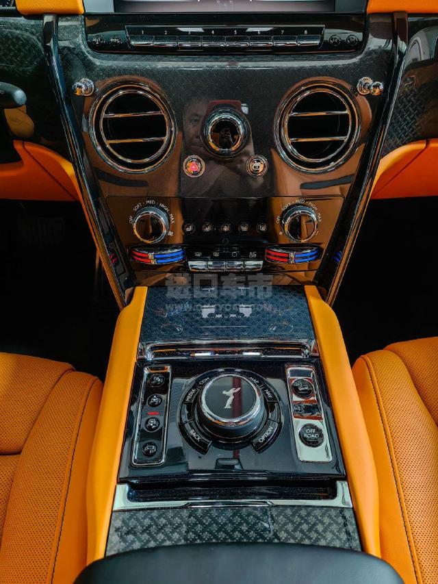 配置 :22英寸部分抛光黑色轮毅 暗铬镀饰的 Ecstasy 女神标志 橘色制动卡钳 橘色双车身腰线 Black Badge 技术碳纤维饰板发光的 Black Badge 门槛板 全车黑色 RR 标志刺绣头枕 黑色对比座椅拼接 驾驶辅助系统包括夜视功能 主动巡航控制和停车辅助 黑色亮条装饰 橘色仪表盖线缝线 劳斯莱斯高级定制音响 前排通风座椅 黑色缝线 后排通风座椅 扩展木饰中央线 前排按摩座椅 橘色盒纹皮革 流星天花板 中央控制台沉浸式座椅 豪华独立腿托 后排按摩座椅 后排隐私玻璃 后排剧院配置 野餐桌 高级羊毛地垫 电动后隔断玻璃帘 电动后车厢侧窗帘