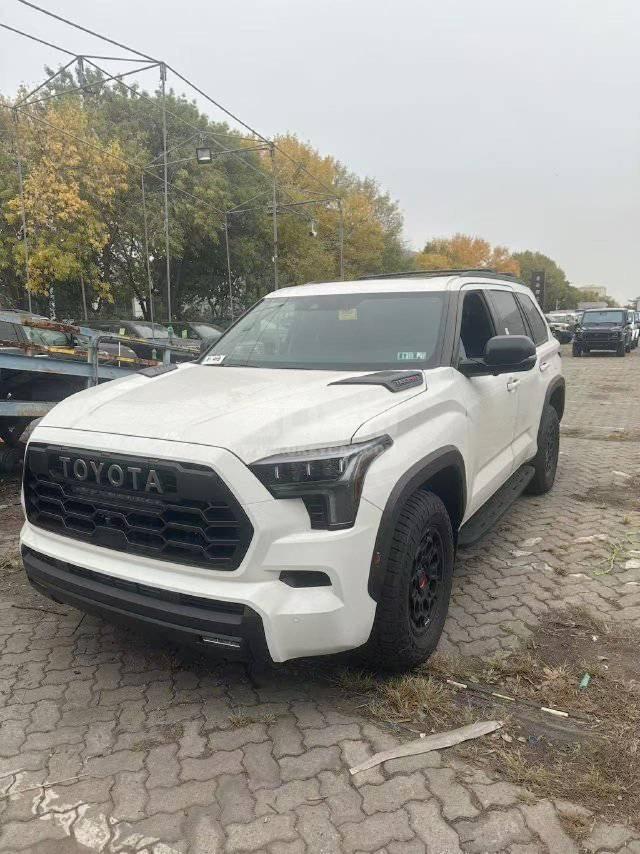 配置 :24款丰田红杉TRDpro 白黑 全景 24.7月 比加版多流媒体后视镜 全景天窗 拖车反向控制,钢制脚踏板!两把钥匙 配置:443马力3.5T双涡轮混动V6,扭矩790,10速。TOYOTA带LED格栅,高级熏黑大灯组,日间行车灯,自动水平调节大灯,18寸黑色合金轮中心盖带TRD,红色前螺旋弹簧和杆,双排气,红色档把及按钮,TOYOTA徽章,铝踏,2.5寸越野悬架,后油压减震,前稳定杆,后座和货物区插座,前加热和通风,船长座椅,无线充电,数显后视镜,14寸屏14扬声器。
